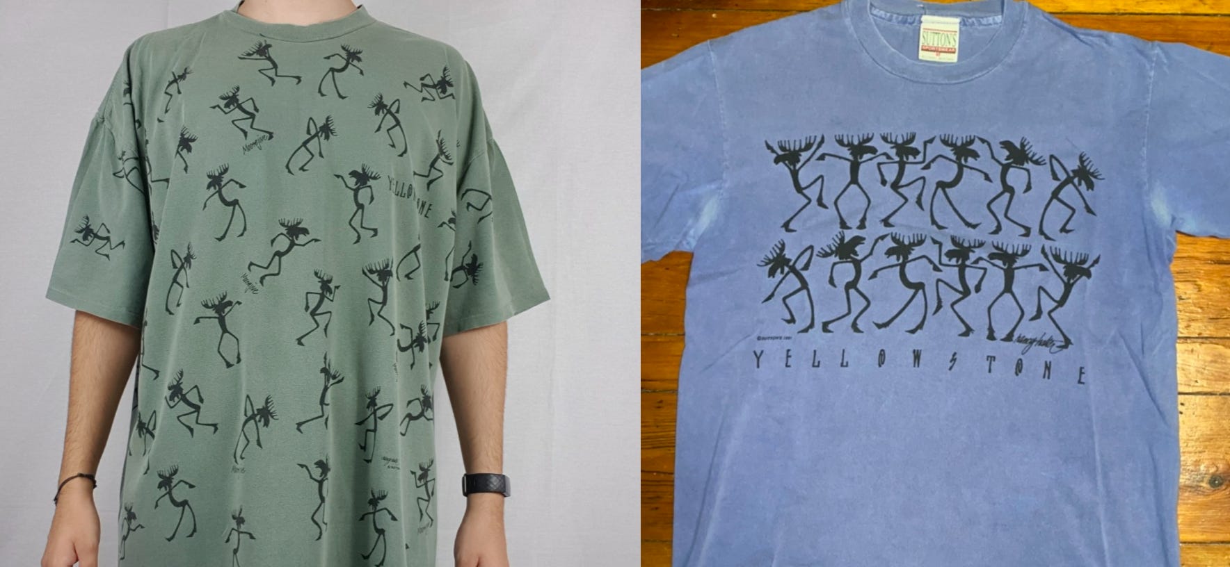 I did find a ridiculous Yellowstone longsleeve from a company called Moosejive. It’s got a real crunchy chest print and some dancing moose on the sleeve. I haven’t been able to learn much about Moosejive except that they made national parks apparel for awhile. More Moosejive grails I found on Depop: